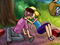 Молодая компания сидит в лесу и конечно самое известное развлечение в такие моменты, это бутылочка. Одна пара отошла от всех и решила уединится. Целуйся так, что бы тебя не спалили друзья. Как только заметят, сразу прекращай.